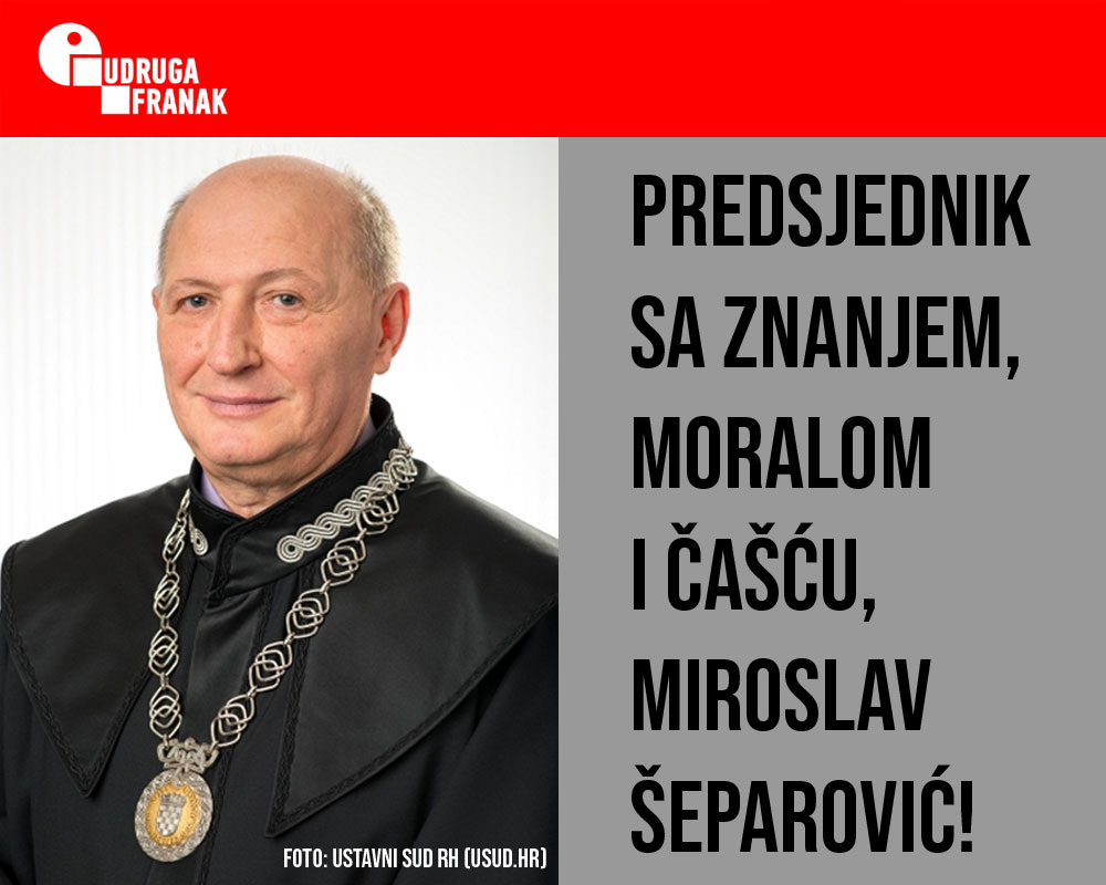 Bivšem predsjedniku Ustavnog suda, i još uvijek sucu Ustavnog suda Miroslavu Šeparoviću želimo puno zdravlja i mira u nastavku njegova životnoga vijeka. Hvala mu na svemu što je činio kako bi obranio dignitet Ustavnog suda koji se pokazao izuzetno važnim subjektom u popravljanju nekih pogrešnih odluka Vrhovnog suda RH, koje su bile protivne i hrvatskom pravu, i pravu Unije.